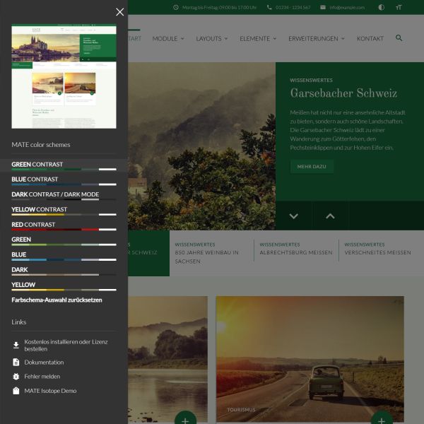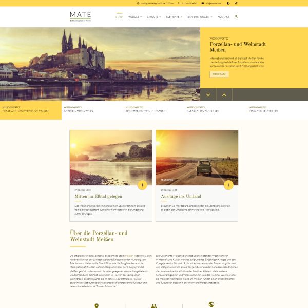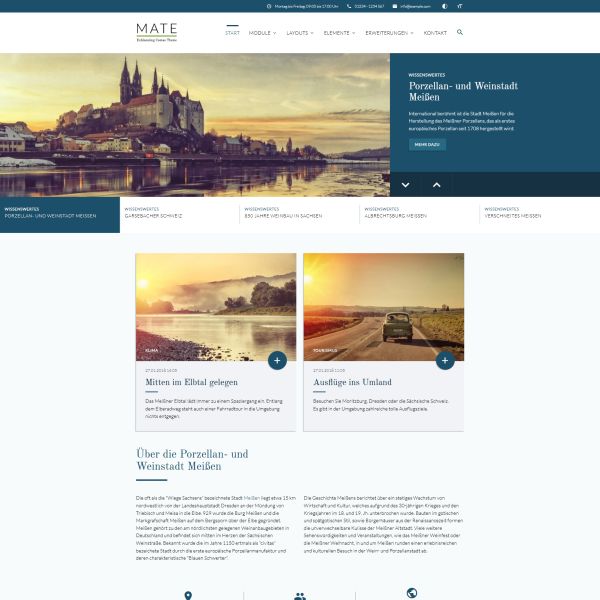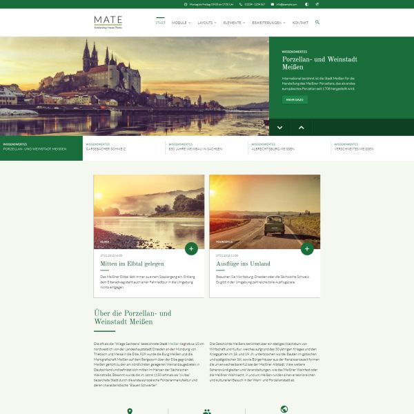 MATE ist ein vielseitiges Contao Theme, das sowohl Contao 4 als auch 5 unterstützt und auf dem Frontend-Framework Materialize basiert, welches die Prinzipien des Material Designs umsetzt.