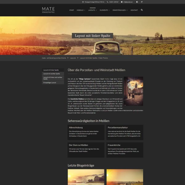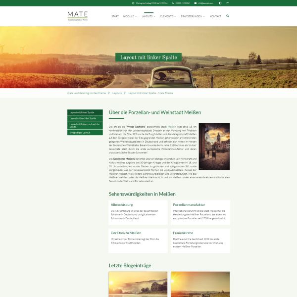 - Layoutvielfalt: Wähle zwischen ein-, zwei- oder dreispaltigen Layouts (mit linker und/oder rechter Spalte).